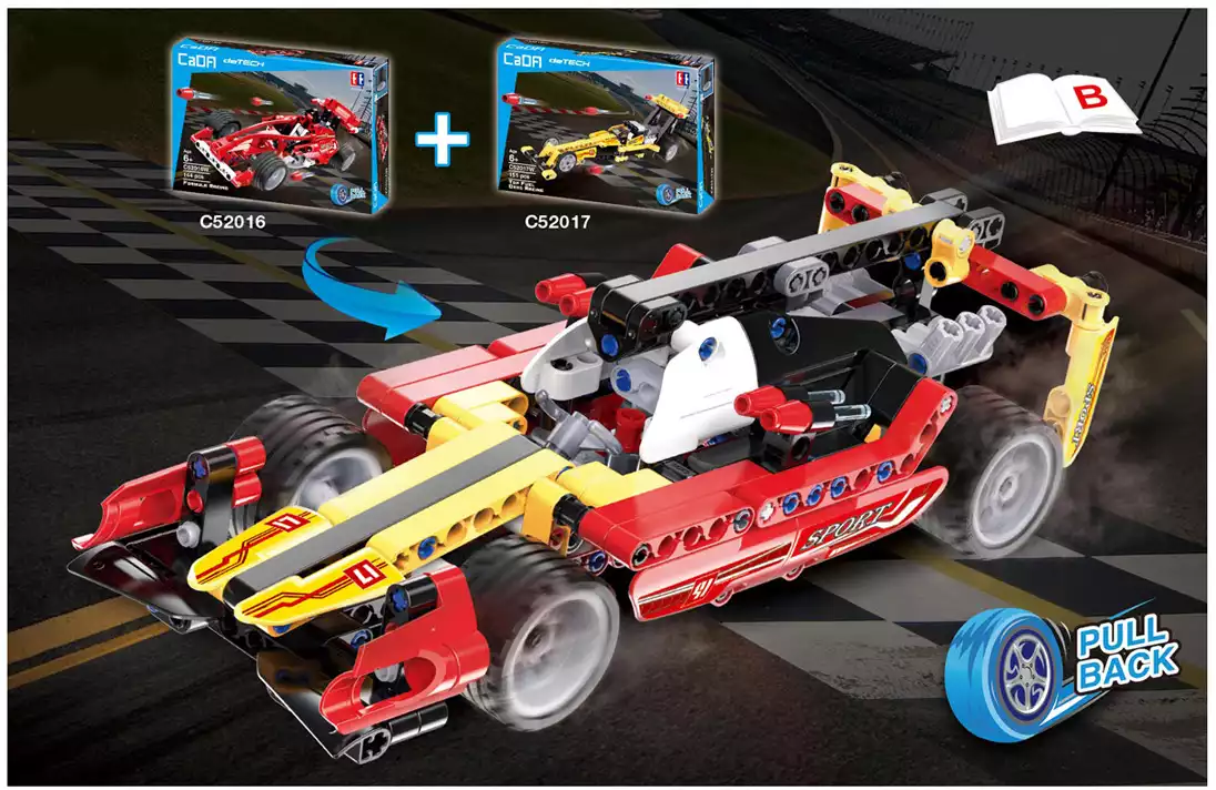 Конструктор машина гоночная красная с инерционным механизмом C52016W 144 дет.